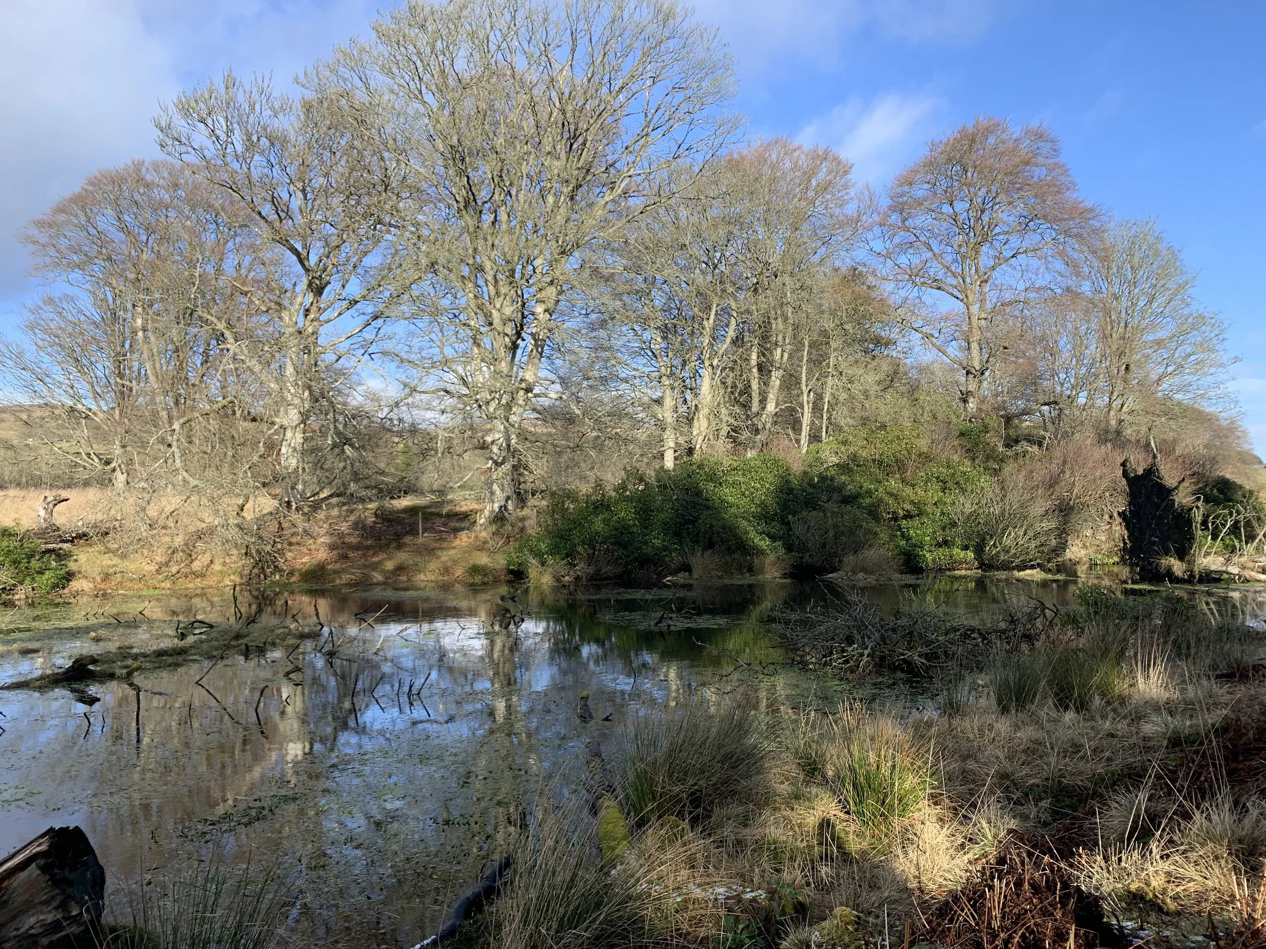 There are also growing areas of wetland, recently re-established by beavers who have blocked old drainage systems.